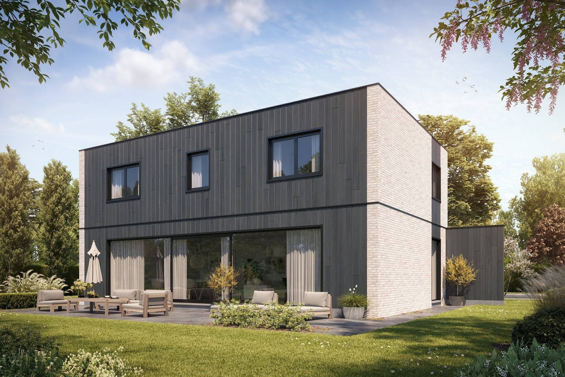 Voor dit perceel kan u bijvoorbeeld kiezen voor de modelwoning Pura 190 – een strakke, eigentijdse villa in een volledig moderne stijl. Deze woning straalt architecturale eenvoud en elegantie uit en biedt tegelijk het hoogste wooncomfort. Met 3 volwaardige slaapkamers en een slimme indeling is er volop ruimte voor het hele gezin.
